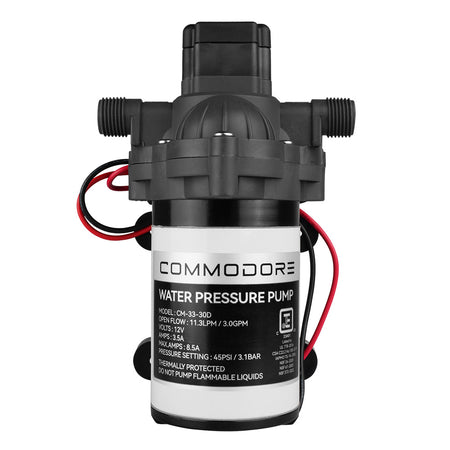 Commodore’s ultra-quiet motor, paired with a completely rubber mounting base, absorbs vibration and reduces noise to levels no louder than a home air conditioner. This pump is easy to install, service, and winterize, thanks to its industry-standard mounting pattern and threaded connections. Backed by a 4-year warranty, it’s a dependable and quiet solution for boats, RVs, and water transfer systems.