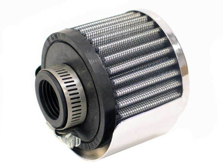 K&N crankcase vent filters are perfect for racing applications, vintage cars or individuals who want to add some aesthetics to their classic carbureted engine. The 62-1511 crankcase vent filter has a chrome top, rubber base and comes with a deflector shield to protect against engine heat. The 1 inch diameter rubber flange is designed to clamp directly on to metal or plastic tubing where venting is needed. Constructed with a cotton filter media it can be cleaned and reused repeatedly.