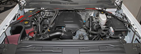 The K&N 77-3090KTK high-flow performance air intake system is a free-flowing, mandrel-bent aluminum tube air induction system designed to fit specific Chevrolet Silverado 2500HD/3500HD and GMC Sierra 2500HD/3500HD models. The restrictive factory air filter and air intake housing on your vehicle are replaced by this K&N air intake system which is designed to dramatically reduce air flow restriction as it smoothes and straightens air flow. The improved air flow allows your engine to inhale a larger amount of air than it would from the stock air intake. More air means more usable power and acceleration throughout your engine's RPM range. In addition to more power, this air intake system improves engine sound with more aggressive and deeper acoustics during acceleration. Includes a chrome topped K&N high-flow air filter and a heat shield that installs into the original air box space. Air is directed through the intake tube into the engine's throttle body for a guaranteed power gain. The intake tube has an attractive textured black powder-coated finish that's made to last and it accommodates the factory mass air sensor and crank case vent hose. The oversized cone shaped air filter can be used for up to 100,000 miles before servicing is needed depending on driving conditions. This air intake is relatively easy to install usually in 90 minutes or less using existing factory mounting points. The tools needed are a couple of screwdrivers, a ratchet set and several wrenches. Some K&N 77 series air intakes are not legal for sale or use in California and other states adopting California emission standards while others are CARB exempt and 50 state legal. Check the K&N catalog or website for vehicle applications and specific CARB status for each vehicle and air intake.