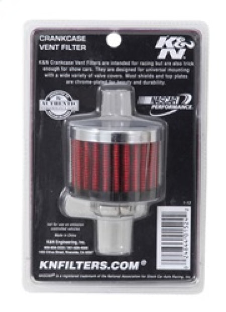 K&N crankcase vent filters are perfect for racing applications, vintage cars or individuals who want to add some aesthetics to their classic carbureted engine. The 62-1330 crankcase vent filter has a K&N embossed chrome-plated steel top with a black rubber base. The 1/2 inch diameter zinc tube is designed to push in and clamp directly on to metal or plastic tubing where venting is needed. Constructed with a synthetic filter media it can be cleaned and reused repeatedly.