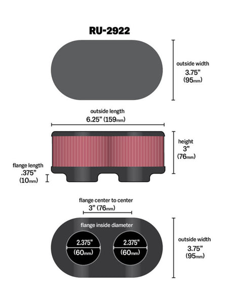 K&N Filter Universal Filter 2 3/4 inch Dual Flange GSXR Oval (2/Box)