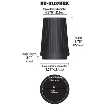 K&N Universal Air Filter (5in Flange / 6-1/2in Base / 4-3/8in Top OD / 8-3/4in Height)