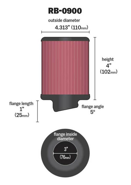 K&N Universal Rubber Filter 3 inch 5 Degree FLG 4 1/2 inch OD 4 inch Height
