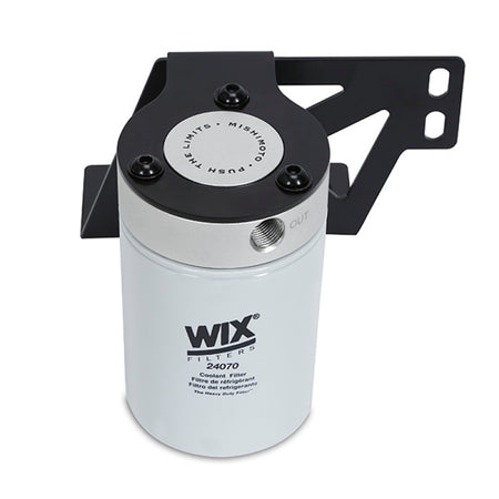 It is commonly known that Ford 6.4L Powerstroke engines have extra solid particles left over from casting the engine which can clog your trucks factory oil cooler, EGR cooler, and other critical engine components. Mishimoto has released a direct-fit coolant filter kit for the 2008--2010 Ford 6.4L Powerstroke to help prevent your truck from being a victim of factory cooler clogs and failure. The application-specific mounting bracket mounts a precision CNC-machined 6061 aluminum filter mount and Wix coolant filter to the passenger side frame rail area, an ideal location for easily removing the filter. This Powerstroke coolant filter kit is routed in parallel with the flow path of your coolant system and allows a small amount of coolant to be filtered with each pass. The Mishimoto engineers also included two brass ball valves with this kit to help make changing the filters a clean process. The two included silicone hoses with embedded heat-resistant fibers are more reliable than factory rubber hose and are offered in black, blue, or red to compliment any engine bay.