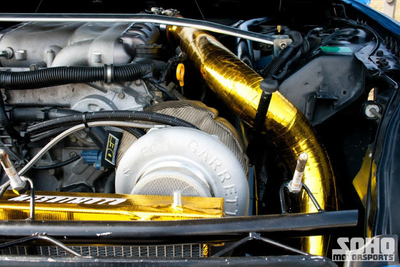 Mishimoto Heat Defense Tape can be used to reflect heat and protect sensitive engine components from high engine temperatures.Heat Defense is constructed of highly reflective metalized polyimide film, the same material used by the space industry to protect sensitive instruments from high temperatures.The film is laminated to glass cloth using a high temperature laminating adhesive.Heat Defense withstands up to 675 F of radiant heat and self-adheres using a high temperature pressure sensitive adhesive, which is protected by an easy to remove protective backing.