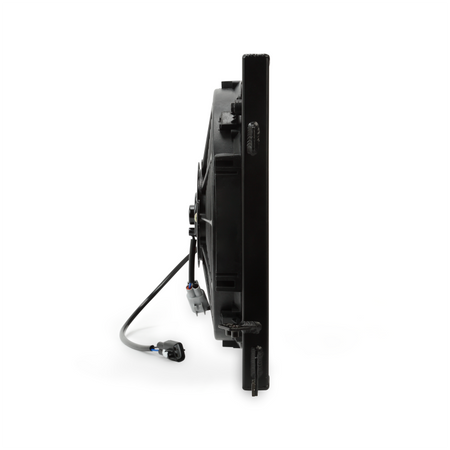 Free up some space in your BRZ / FR-S / or GT86's small engine bay with the Mishimoto Plug-N-Play Aluminum Fan Shroud Kit in Black! This kit bolts directly to your stock or Mishimoto Subaru BRZ /Scion FR-S Performance Aluminum Radiator and works perfectly with the stock coolant overflow tank. The brushed aluminum fan shroud is preassembled in the correct location with two 12" high-flow fans, and prewired with stock-style connectors. This plug-n-play kit requires zero splicing, soldering, or crimping and bolts into place just like the stock fan shroud setup. Each fan provides over 1150 CFM of airflow, which effectively keeps hot engine temperatures at bay. Thanks to a slim profile, this fan shroud has a maximum depth of just 3.5" that saves significantly more engine bay space for a larger header, turbo kit, or supercharger. This kit includes all hardware for installation and the Mishimoto Lifetime Warranty.