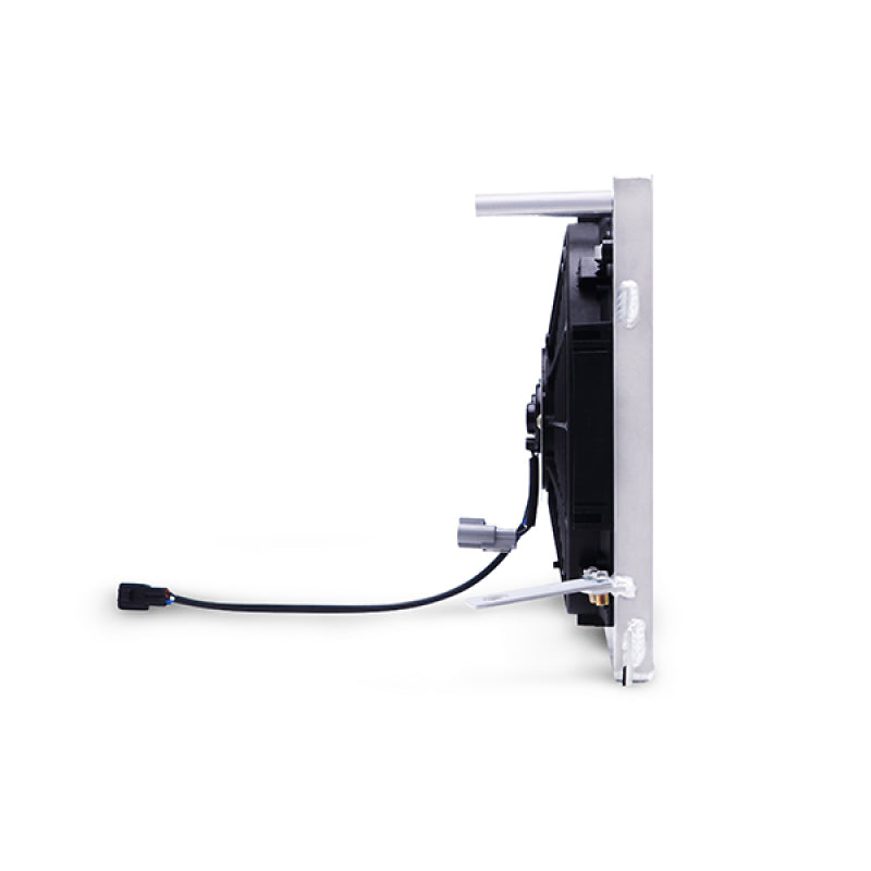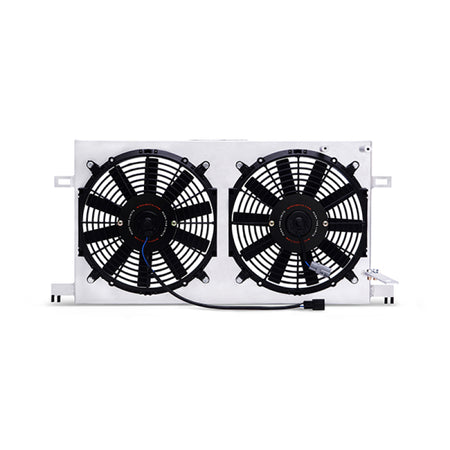Free up some space in your BRZ / FR-S / or GT86's small engine bay with the Mishimoto Plug-N-Play Aluminum Fan Shroud Kit! This kit bolts directly to your stock or Mishimoto Subaru BRZ /Scion FR-S Performance Aluminum Radiator and works perfectly with the stock coolant overflow tank. The brushed aluminum fan shroud is preassembled in the correct location with two 12" high-flow fans, and prewired with stock-style connectors. This plug-n-play kit requires zero splicing, soldering, or crimping and bolts into place just like the stock fan shroud setup. Each fan provides over 1150 CFM of airflow, which effectively keeps hot engine temperatures at bay. Thanks to a slim profile, this fan shroud has a maximum depth of just 3.5" that saves significantly more engine bay space for a larger header, turbo kit, or supercharger. This kit includes all hardware for installation and the Mishimoto Lifetime Warranty.