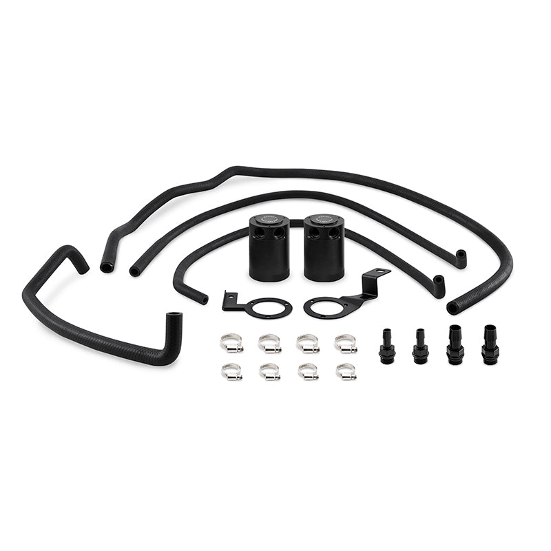 Mishimoto is proud to be expanding their line of 2015 WRX parts! The Mishimoto 2015-2016 WRX Baffled Oil Catch Can System is designed and engineered to reduce carbon buildup, a common issue with direct fuel injection engines such as the FA20-DIT. This 2015-2016 WRX system includes two Mishimoto Compact Baffled Oil Catch Cans, designed to separate oil particles from the PCV/CCV air that would normally be routed back to your intake. The internal air diverter turbulates the air longer and ensures all the oil sinks to the bottom of the can, leaving nothing but clean air to pass through the 50-micron bronze filter to the intake. An internal baffle keeps the collected oil from splashing around under race conditions. The 100% billet, 6061 aluminum cans include two black CNC-machined aluminum fittings and direct-fit steel powder-coated brackets which mount the cans in serviceable locations. This makes maintaining your 2015-2016 WRX system a breeze, as the cans are also 100% washable, unlike many other cans that require you to replace your filtration system. To connect the cans to your PCV and CCV systems, the Mishimoto 2015-2016 WRX Baffled Oil Catch Can System includes application-specific hoses, keeping your engine bay looking clean! Whether you are entering your 2015-2016 WRX in the local rallycross, or lapping at your next track day, trust Mishimoto and our line of 2015 WRX parts to keep your WRX cool. This kit, like our entire line of 2015 WRX parts, includes the signature Mishimoto Lifetime Warranty. Our catch cans are different from most air-oil-separator (AOS) systems on a few levels. First, our catch cans are not heated. This means that all of the blow-by is able to condense in the can, including low-octane oil vapors and contaminated fuel vapors. Most AOS systems also drain the blow-by back into the oil pan, while our catch cans trap the blow-by and ke