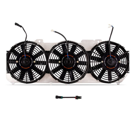 Crawling up steep rock faces, muddy hills, or narrow trails can put a lot of stress on your 1989?2001 Jeep Cherokee XJ 4.0L cooling system. The stock fan system on the 1989?2001 Jeep Cherokee XJ 4.0L is an archaic design that?s powered by the vehicle?s engine. It adds a lot of weight and drag to the engine, sucking horsepower and torque just to get it moving. Once it does start moving, the amount of air it moves is dependent on the engine speed. If the engine isn?t turning fast, neither is the fan, and there?s no air moving through your radiator. That?s why Mishimoto is excited to announce our 1989?2001 Jeep Cherokee XJ 4.0L Performance Aluminum Fan Shroud. This fan shroud incorporates three Mishimoto high-flow 10? electric slim fans. Each of these fans moves a constant 950 CFM regardless of engine speed. One fan replaces the stock A/C fan, while the other two fans are free to cool the radiator. The included A/C fan jumper harness ensures proper A/C function with 1997-2001 models. The lightweight aluminum fan shroud also covers more of the radiator than the stock fan shroud, meaning your entire radiator can benefit from the increase airflow. In our testing, we found that the Mishimoto XJ Fan shroud moved air 41.9% better than the stock fan shroud at idle and 22% better than the stock fans at 2,500 RPM. Our electric fan shroud also eliminates the heavy mechanical fan, reducing drag on the engine and freeing up horsepower and torque for your trail climbing enjoyment. The Mishimoto fans can be activated manually with a switch (sold separately) or by our available adjustable fan controller. The Mishimoto fan controller mounts conveniently on the Mishimoto fan shroud and can be set to activate the fans at any temperature from 150 F to 240 F. The kit includes everything you need for installation, including a wiring harness and a push-in radiator probe temperature sensor and in-line NPT temperature sensor. The Mishimoto 1989?2001 Jeep Ch