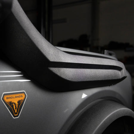 The 2021+ 2.3L/2.7L Ford Bronco was destined for the unbeaten path. Often, the unbeaten path entails dust, debris, and waterways, leaving your Bronco gasping for clean air. Luckily, Borne Off-Road has a solution to get fresh air into your intake so you can blaze the trail with ease.----This Borne Off-Road 2021+ Ford Bronco 2.3/2.7L snorkel moves the fresh air inlet to roof height, allowing the engine to draw in cleaner air. Our precision rotational-molded tube is made from durable, UV-resistant cross-linked polyethylene that can withstand the heat of the sun and any debris the trail can throw at it. The top of our snorkel includes a 6-inch inlet with a steel mesh cover to protect the intake from large debris. This inlet can also be swapped for a pre-filter to help keep your main intake filter clean.----Our snorkel mounts to the Bronco’s body with durable 3mm-thick steel brackets and accepts A-pillar lights with the included brackets. The snorkel mates directly to the airbox with an included adapter, making it applicable for use with both the stock or Mishimoto intake. The brackets and inlet screen are finished in micro-wrinkle black powder coat for maximum durability. Like all Mishimoto and Borne Off-Road products, this Ford Bronco snorkel is backed by our Mishimoto Lifetime Warranty.