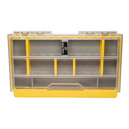 The Plano EDGE™ Standard Utility Boxes feature pre-cut vented and water-absorbing desiccant dividers, which allows anglers to create anywhere from 4 to 32 unique storage compartments for various types of tackle. It also features Rustrictor rust preventative technology molded into the base, a Dri-Loc watertight seal that keeps your tackle in pristine condition, and a crystal clear lid design for quick identification of contents. A single oversized latch allows for easy one-handed open operation, and features a unique EZ Label system that will help you identify box contents when stacked on top of each other.