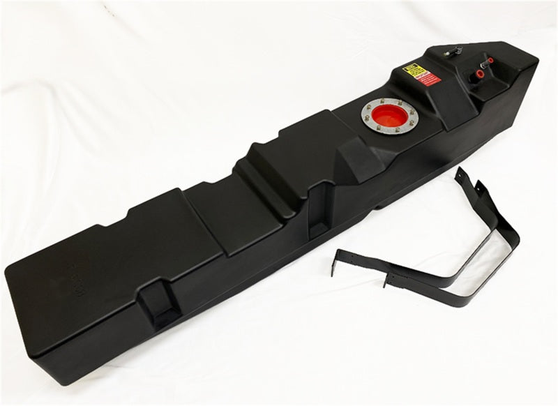 51 Gallon*, extra heavy duty cross-linked polyethylene fuel tank. Tank comes complete with powder-coated or plated steel mounting strap set, extruded rubber mounting bushings, vent hoses, rollover safety vent valve, seals and required clamps.Tank features exclusive low fuel trap design. For Crew Cab equipped vehicles with 6 ½ ft. Short Bed.•LIFETIME WarrantyFor model years 1999-2007. For F250 HD & F350 HD Models with Power Stroke Engines.