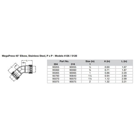 Viega MegaPress 2" 45 Stainless Steel 304 Elbow - Double Press Connection - Smart Connect Technology [95075]