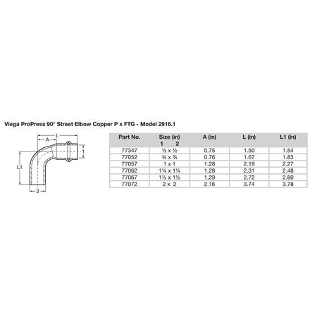 ProPress 1-1/2" - 90° Copper Elbow - Street/Press Connection - Smart Connect Technology