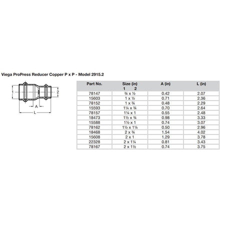 ProPress 1-1/2" x 1" Copper Reducer - Double Press Connection - Smart Connect Technology